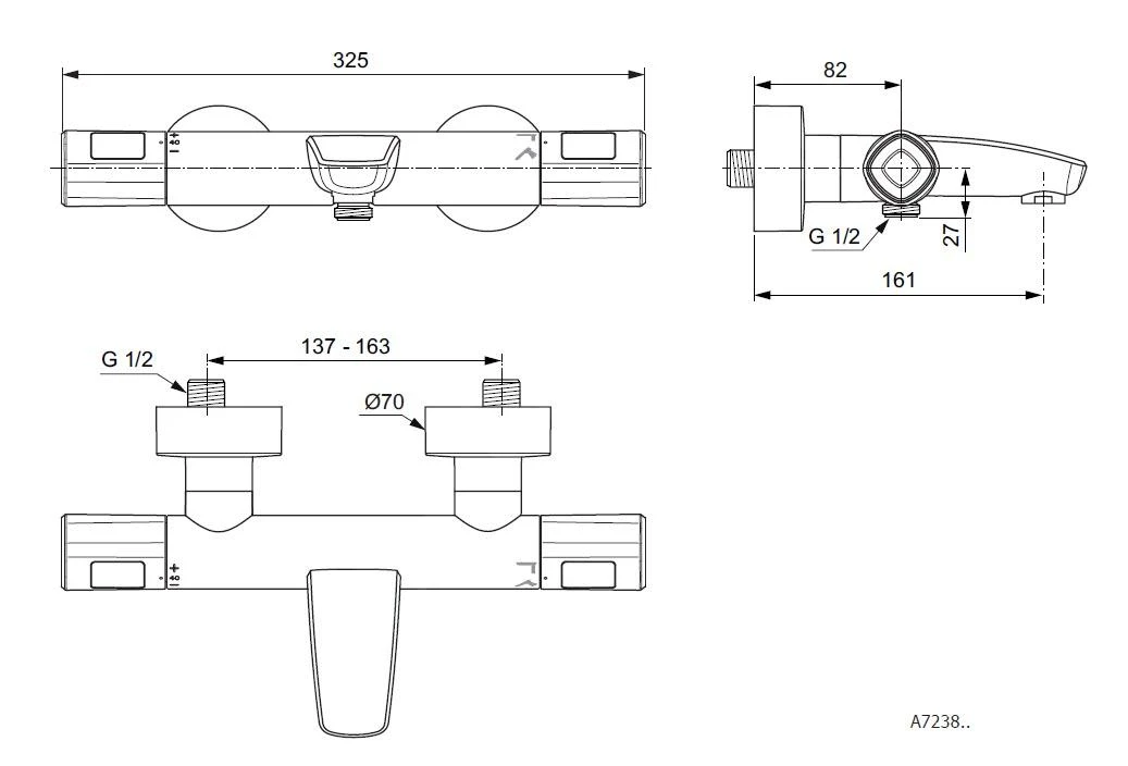 Grifo termostático de bañera de pared
