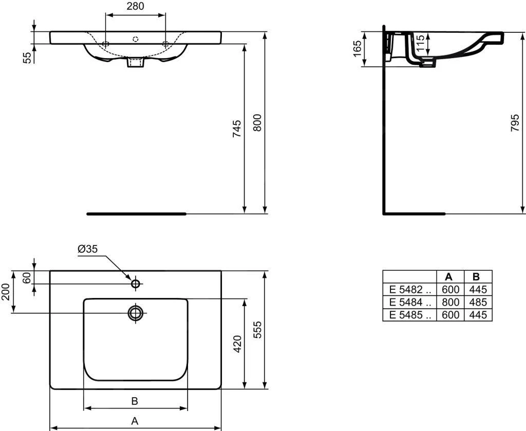 Ideal Standard Connect Freedom – Lavabo 600×560 Mm, 1 Orificio Para Grifo, Sin Rebosadero, Blanco E548501