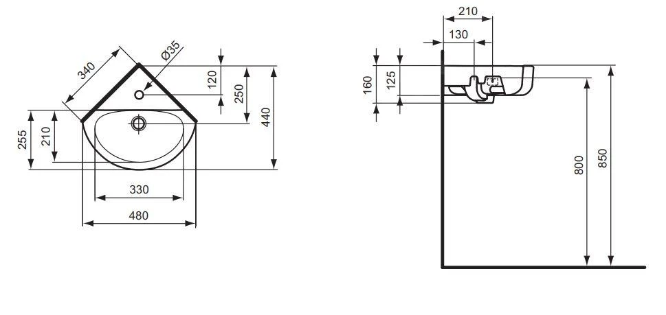 Ideal Standard Connect – Lavamanos Angular, 450x350x160 Mm, Con Rebosadero, Orificio Para Grifo, Con Ideal Plus, Blanco E7136MA
