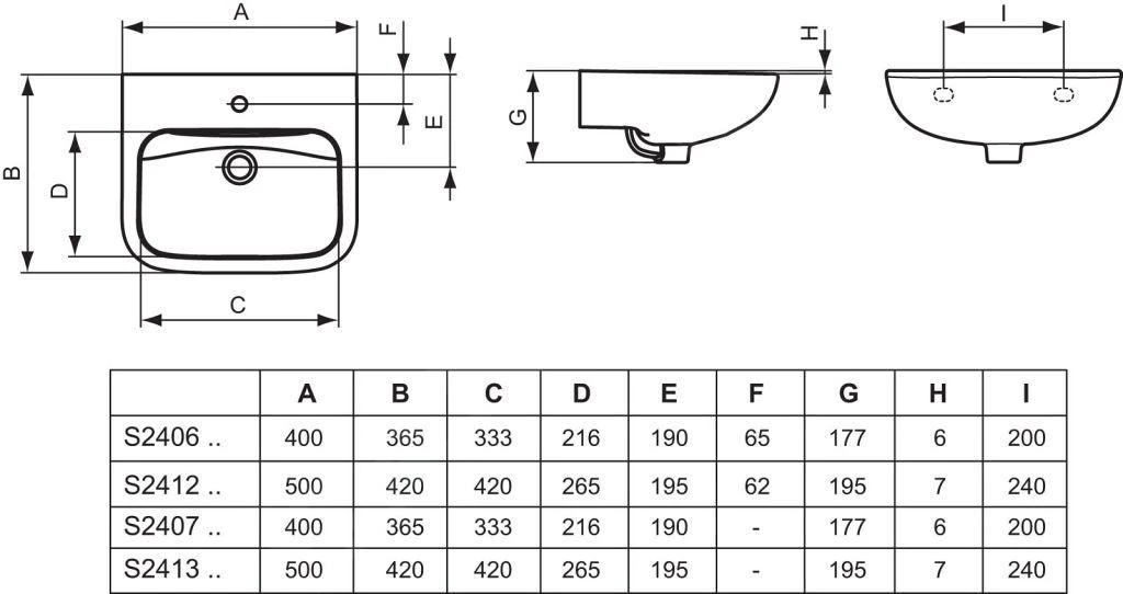 Ideal Standard Contour 21 – Lavabo 500×420 Mm, Sin Orificio Para Grifo, Con Rebosadero, Blanco S241201