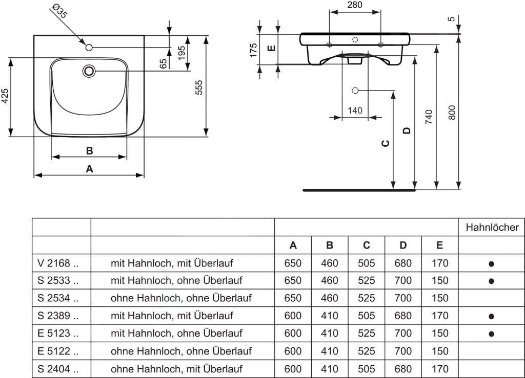 Ideal Standard Contour 21 – Lavabo Para Personas Discapacitadas 650×560 Mm, Orificio Para Grifo, Sin Rebosadero, Blanco S253301