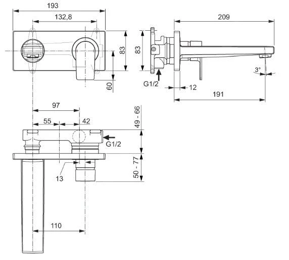 Grifo monomando de lavabo sin cuerpo de montaje