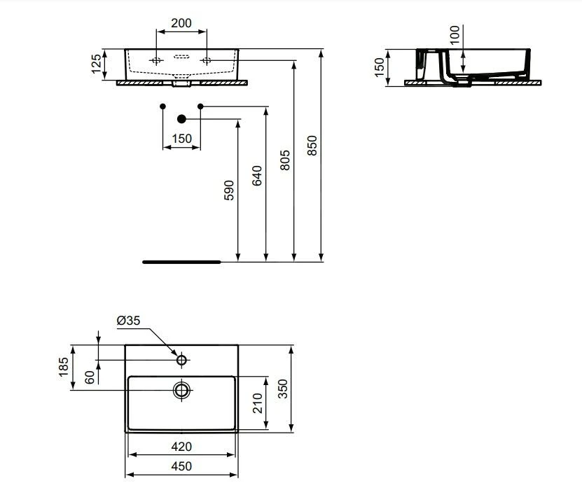Ideal Standard Ipalyss – Lavabo Sobre Encimera, 600×380 Mm, Sin Rebosadero, Negro Mate E1396V3