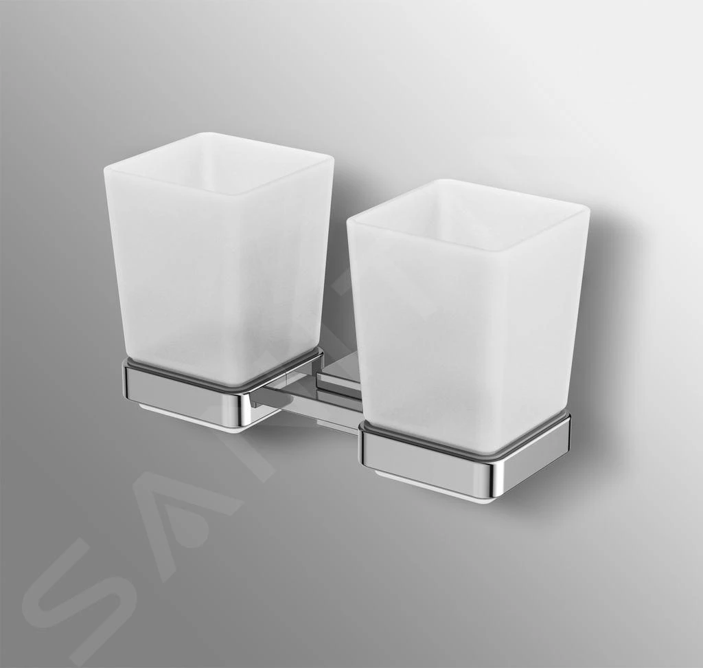 Ideal Standard IOM Square – Vaso Para Cepillos De Dientes Con Soporte, Cristal Opaco/cromo E2204AA