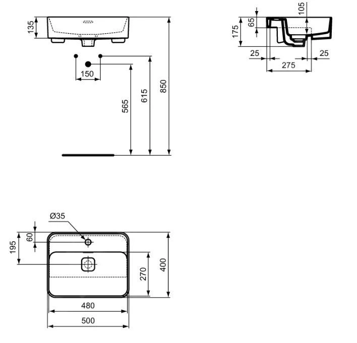 Ideal Standard Connect – Lavabo Cube 650x460x175 Mm, 1 Orificio Para Grifería, Blanco E772901