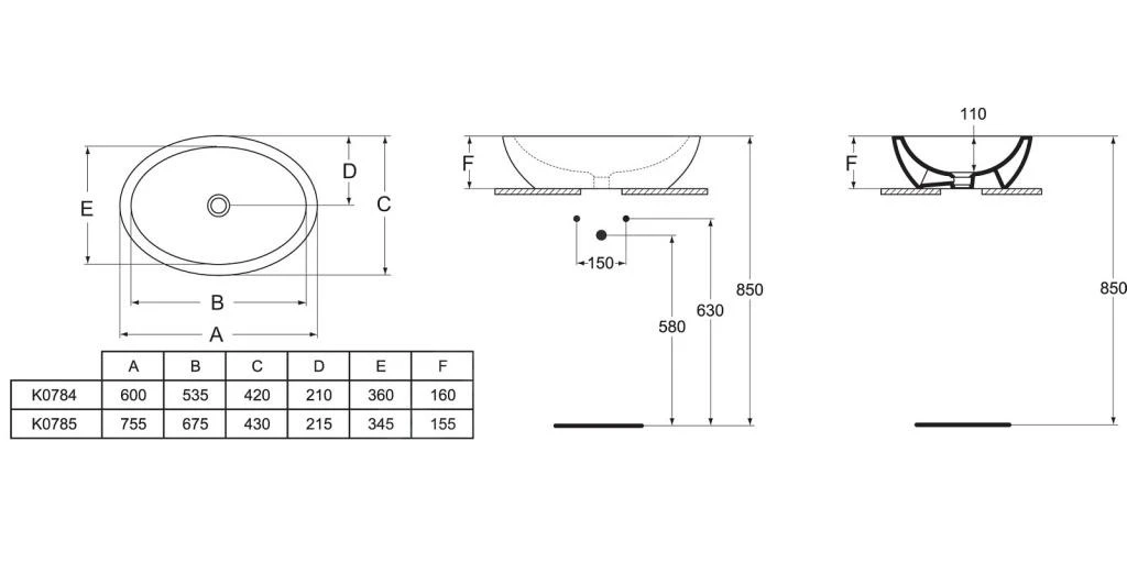 Ideal Standard Strada – Lavabo 600x420x160 Mm, Con Ideal Plus, Blanco K0784MA