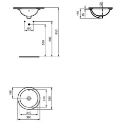 Ideal Standard Conca Ceram – Lavabo Sobre Encimera 600×400 Mm, Sin Rebosadero, Blanco T369801