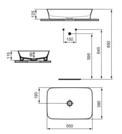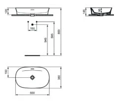 Ideal Standard Ipalyss – Lavabo Sobre Encimera, 550×380 Mm, Sin Rebosadero, Blanco Mate E2076V1