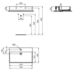 Ideal Standard Extra – Lavabo 700×450 Mm, Con Rebosadero, Sin Orificio Para Grifo, Blanco T389301