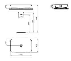 Ideal Standard Ipalyss – Lavabo Sobre Encimera, 600×380 Mm, Sin Rebosadero, Negro Mate E1396V3