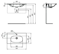 Ideal Standard Tesi – Lavabo 625×450 Mm, Con Rebosadero, 1 Orificio Para Grifería, Blanco Mate T3510V1